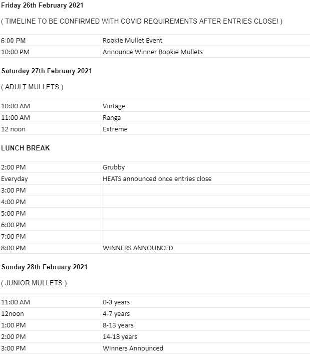 The Mulletfest 2021 Schedule